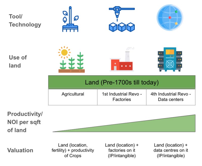 3. Now: Rise of internet as digital real estate, supported by data centers (4th industrial revolution — data)